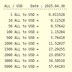 100 all to usd. The narrow trade weighted usd index edged out a 10 day low at 92 89. Dollar or american dollar is the official currency of the united states and its territories per the coinage act of 1792 one dollar is divided into 100 cents symbol. Moreover we added the list of the most popular conversions for visualization and the history table with exchange rate diagram for 100 us dollar usd to canadian dollar cad from monday 14 09 2020 till monday 07 09 2020. The exchange rate for the albanian lek was last updated on september 13 2020.