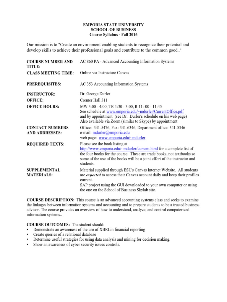 Acc 535 Accounting Information Systems Syllabus Pdf Free Download