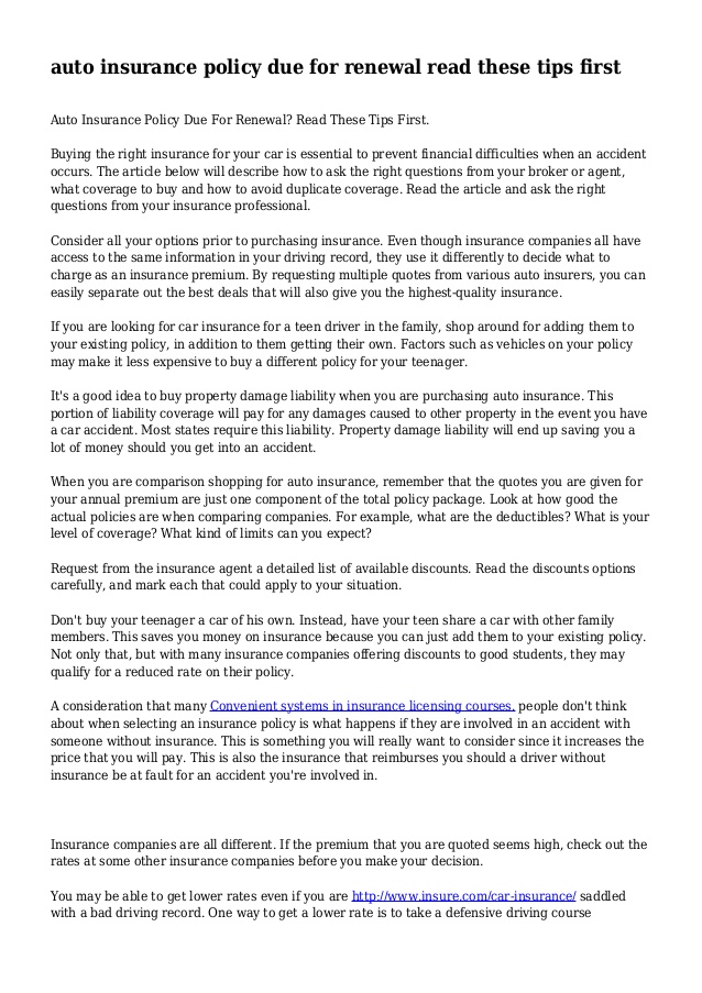 Vehicle Insurance How To Read Auto Insurance Policy How Information Center
