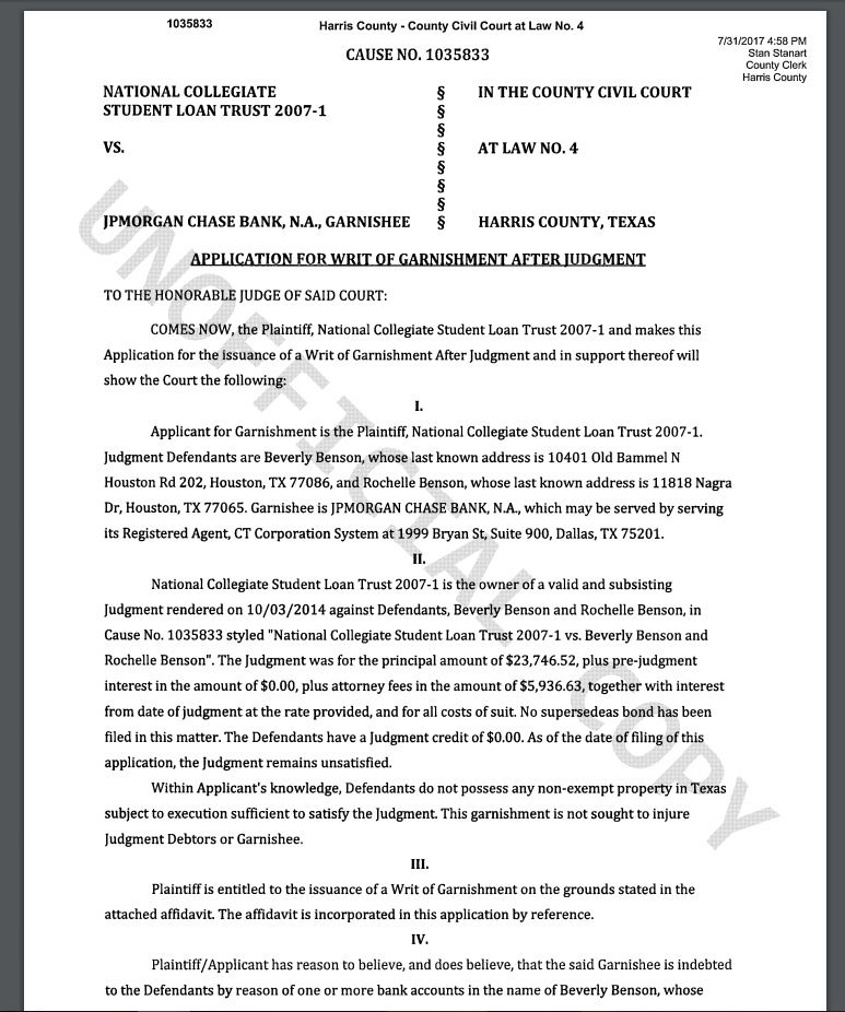 Consumer Debt Litigation Mostly Texas Bank Of America N A Bana Finds Way To Cash In At The Back End Of Private Student Loan Debt Crisis Jointly Raids Bank Account Of Student Borrower And Splits
