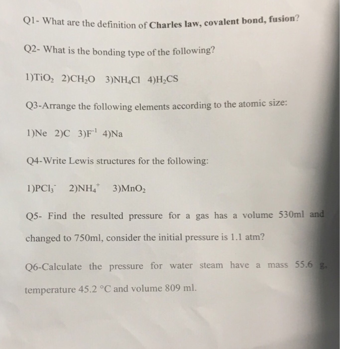 Solved What Are The Definition Of Charles Law Covalent B Chegg Com